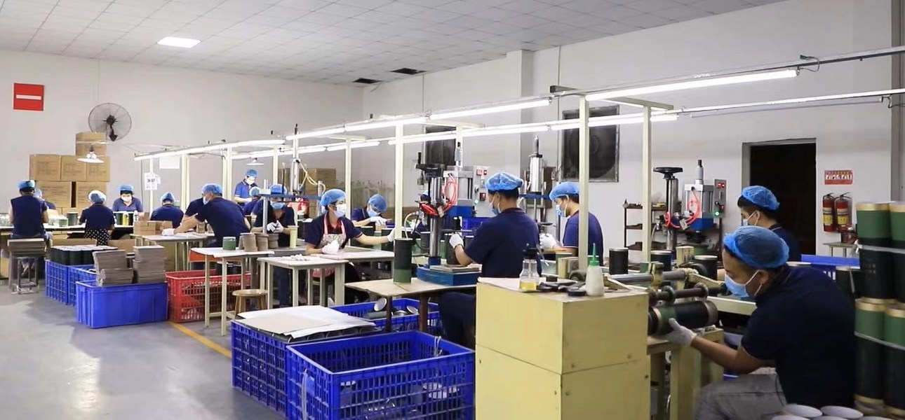 Kami memiliki 6 jalur produksi otomatis yang panjangnya 15 meter, 16 mesin pemotong tabung kertas otomatis, 5 mesin pelabelan otomatis, 10 mesin tepi gulung otomatis, 2 mesin kertas besar dll.total 150 mesin layanan untuk produksi kami.